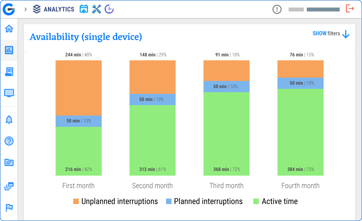 Within your first week, you'll discover downtime patterns invisible to the naked eye. One of our customers discovered 30 minutes of unnecessary cleaning time per machine per day. That single insight now saves them €12,000/month across their 12 machines.