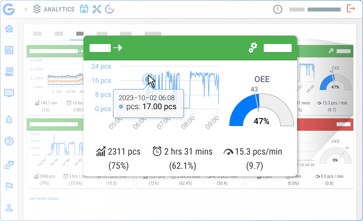 Monitor real-time production and take immediate action to enhance OEE. Later, analyse the data to understand discrepancies between actual performance and the production plan. GlobalReader OEE software collects and provides insights into these variations.