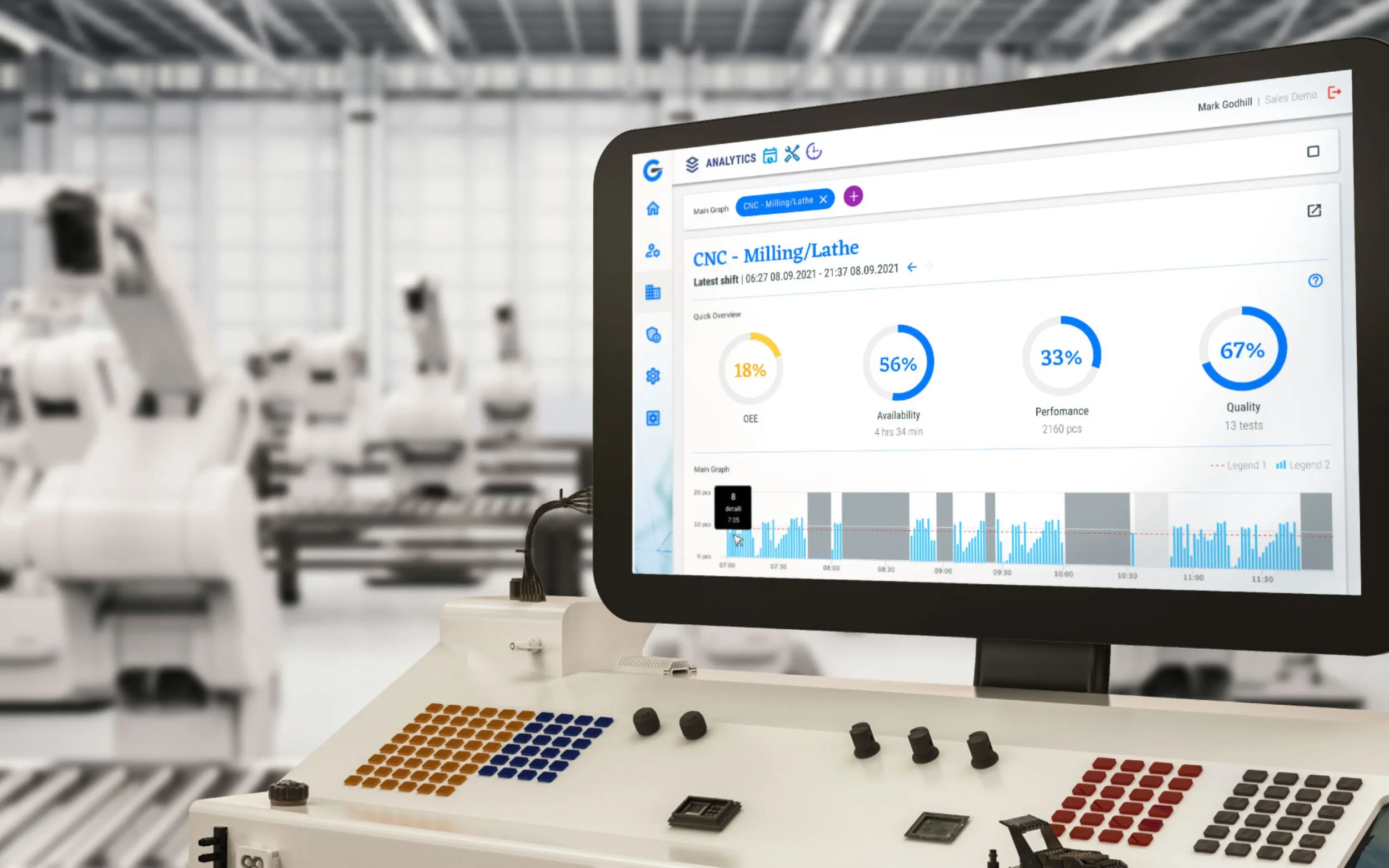 Real‑time or daily OEE reports on key machines and lines